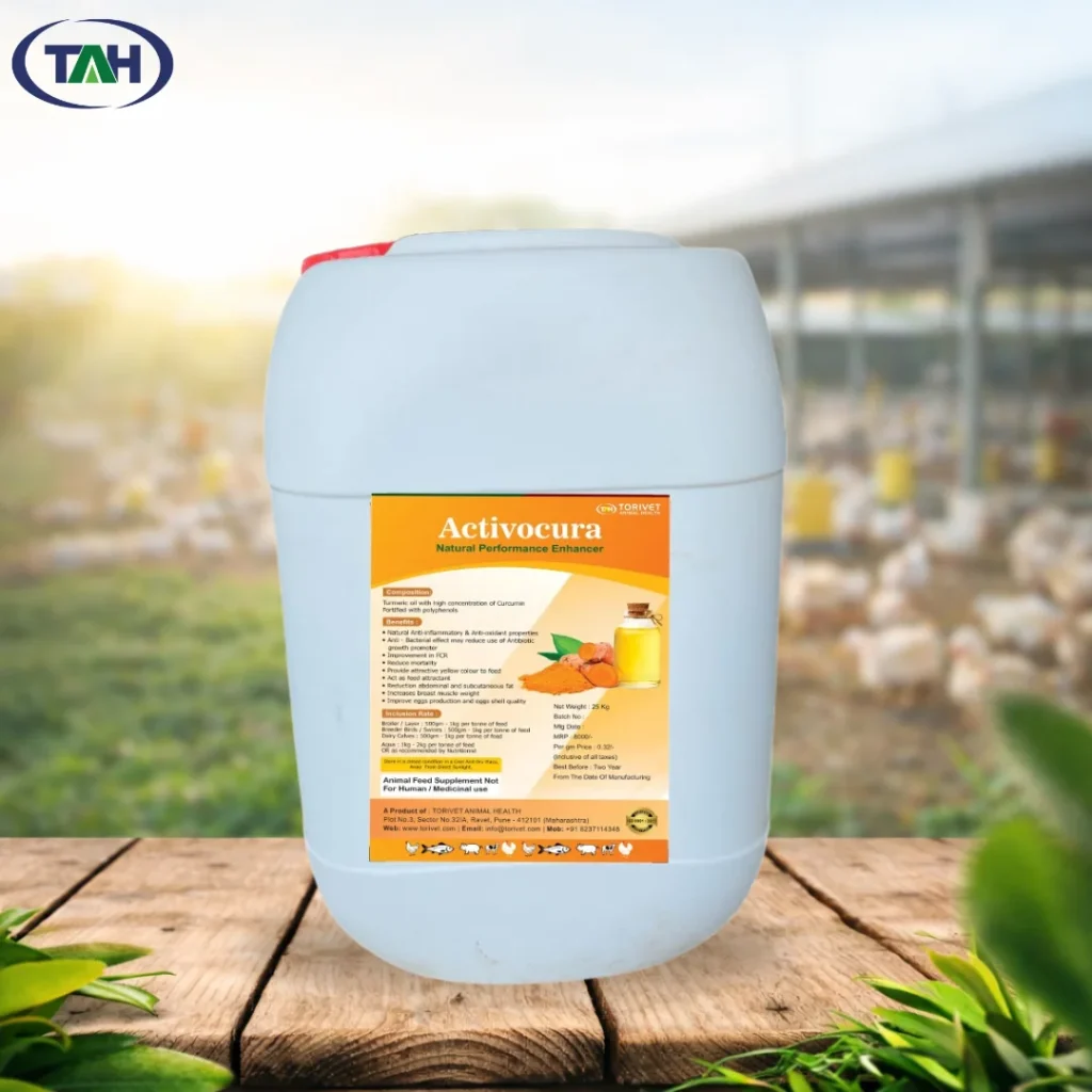 Activocura is a natural performance enhancer designed to support growth, feed efficiency, and overall productivity in poultry. Formulated with turmeric oil rich in curcumin and fortified with polyphenols, Activocura helps maintain digestive health, supports immunity, and improves nutrient utilization in birds.